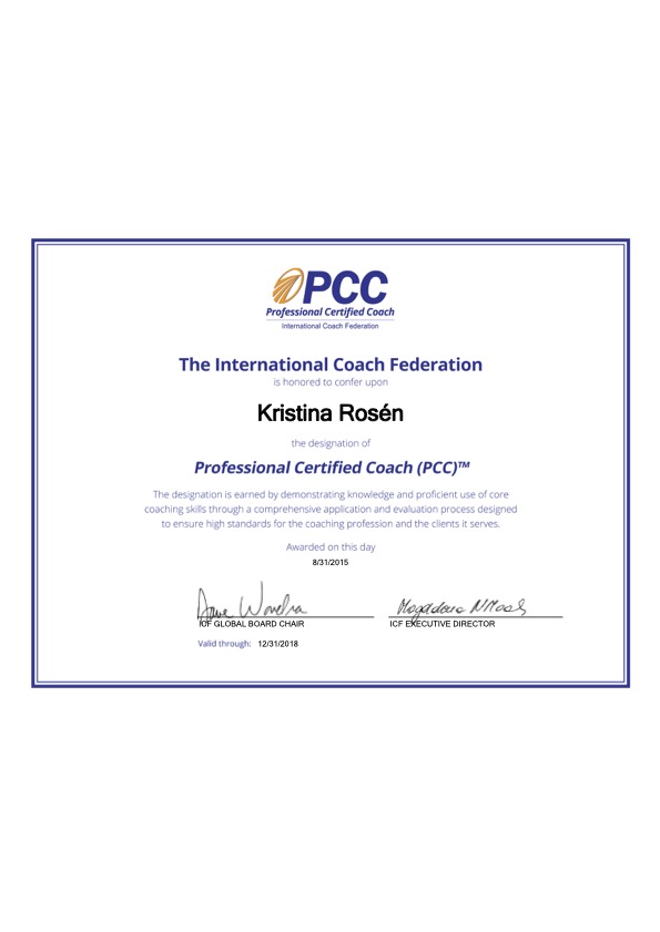 Det var på våren 2006 och idag har jag arbetat som coach sedan 2012, valde att i augusti 2014 påbörja min specifika coachingutbildning hos Gothia Akademi i Göteborg och nådde min Professional Coach Certification (PCC) i augusti 2015. Sedan januari 2021 är jag certifierad på högsta nivån, Master Certified Coach (MCC,) är en av drygt 20 i Sverige och en av drygt 1000 i världen. International Coaching Federation har sedan 1997 arbetat för att certifiera coacher enligt internationell standard baserat på kärnkompetenser och etik och finns i fler än 150 länder med drygt 45000 medlemmar. För mig som är gymnasieingenjör från Teknis i Borås, med 20 års yrkeserfarenhet från tekniska branscher och en hel hög med högskolepoäng från diverse utbildningar så var det viktigt att få en validitet i mitt nya yrkesval.